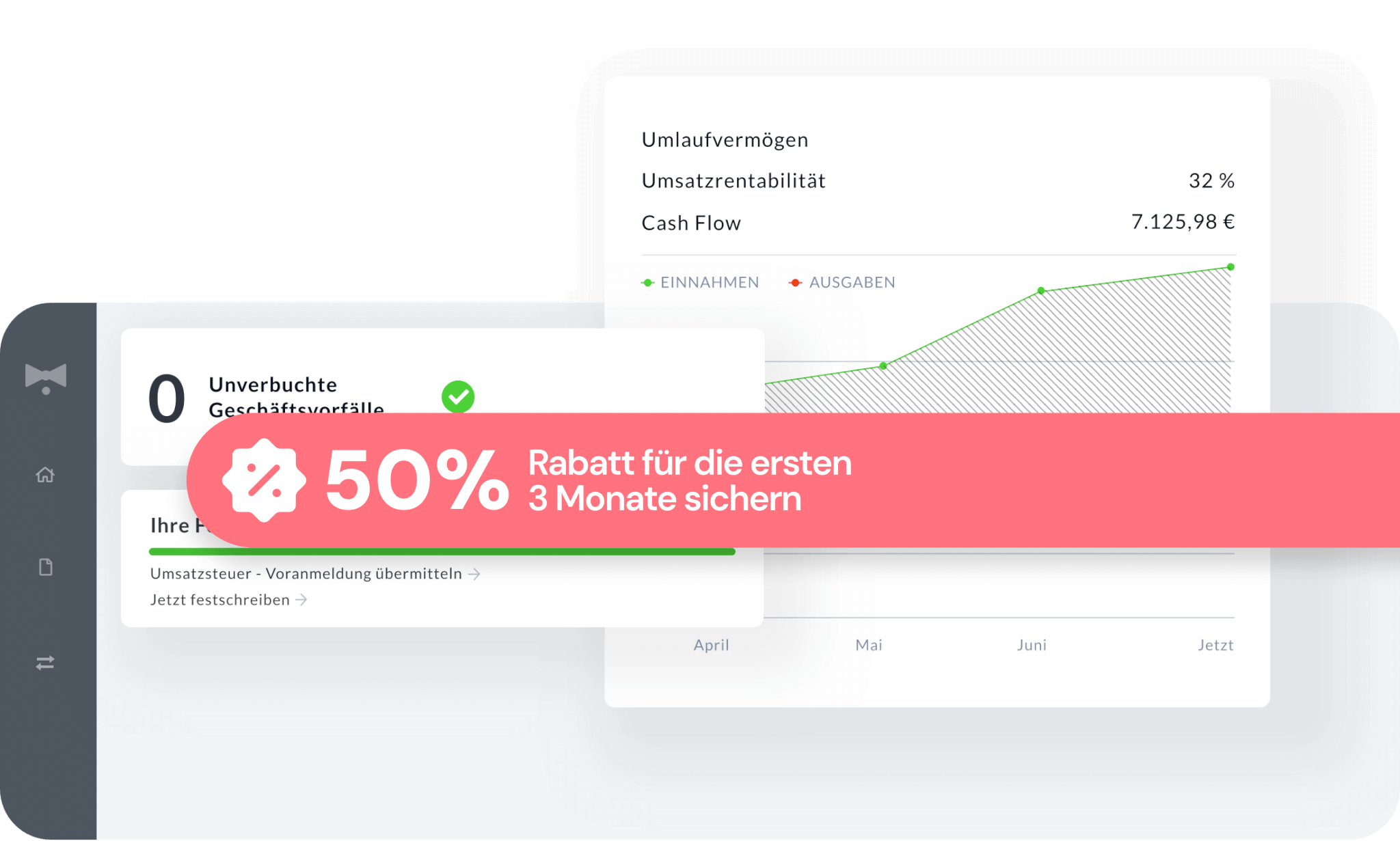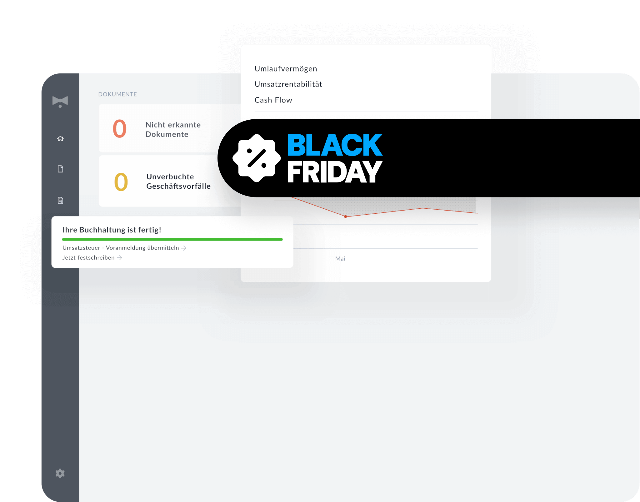 BuchhaltungsButler ist eine Buchhaltungssoftware, die mitdenkt. Unser übersichtliches Dashboard liefert Ihnen tagesaktuelle KPIs, während smarte To-do-Listen alle Schritte hin zum korrekten Monatsabschluss spielend einfach machen.