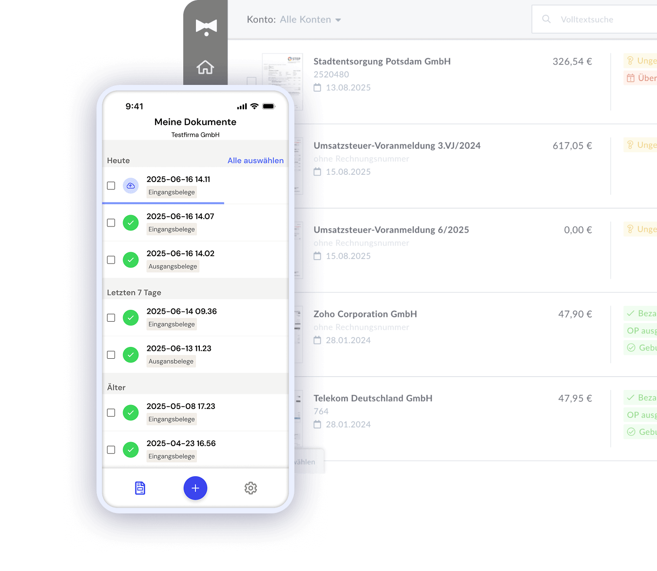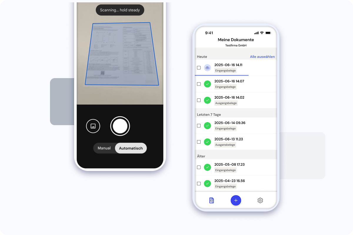 Nach dem Scannen werden Ihre Dokumente sicher und verschlüsselt direkt in Ihren BuchhaltungsButler-Account übertragen. Ihr Account ist nahtlos mit der App verknüpft, für maximale Effizienz.