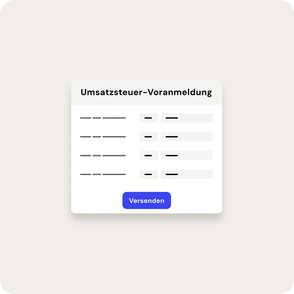 Erledigen Sie Ihre steuerlichen Pflichten schnell und sicher. Über die integrierte ELSTER-Schnittstelle übermitteln Sie Ihre Umsatzsteuer-Voranmeldung mit wenigen Klicks. Unsere sauber aufbereiteten EÜR- und Bilanz-Auswertungen liefern Ihnen zudem das perfekte Fundament, um Ihre Steuererklärung bei Bedarf selbst in die Hand zu nehmen.